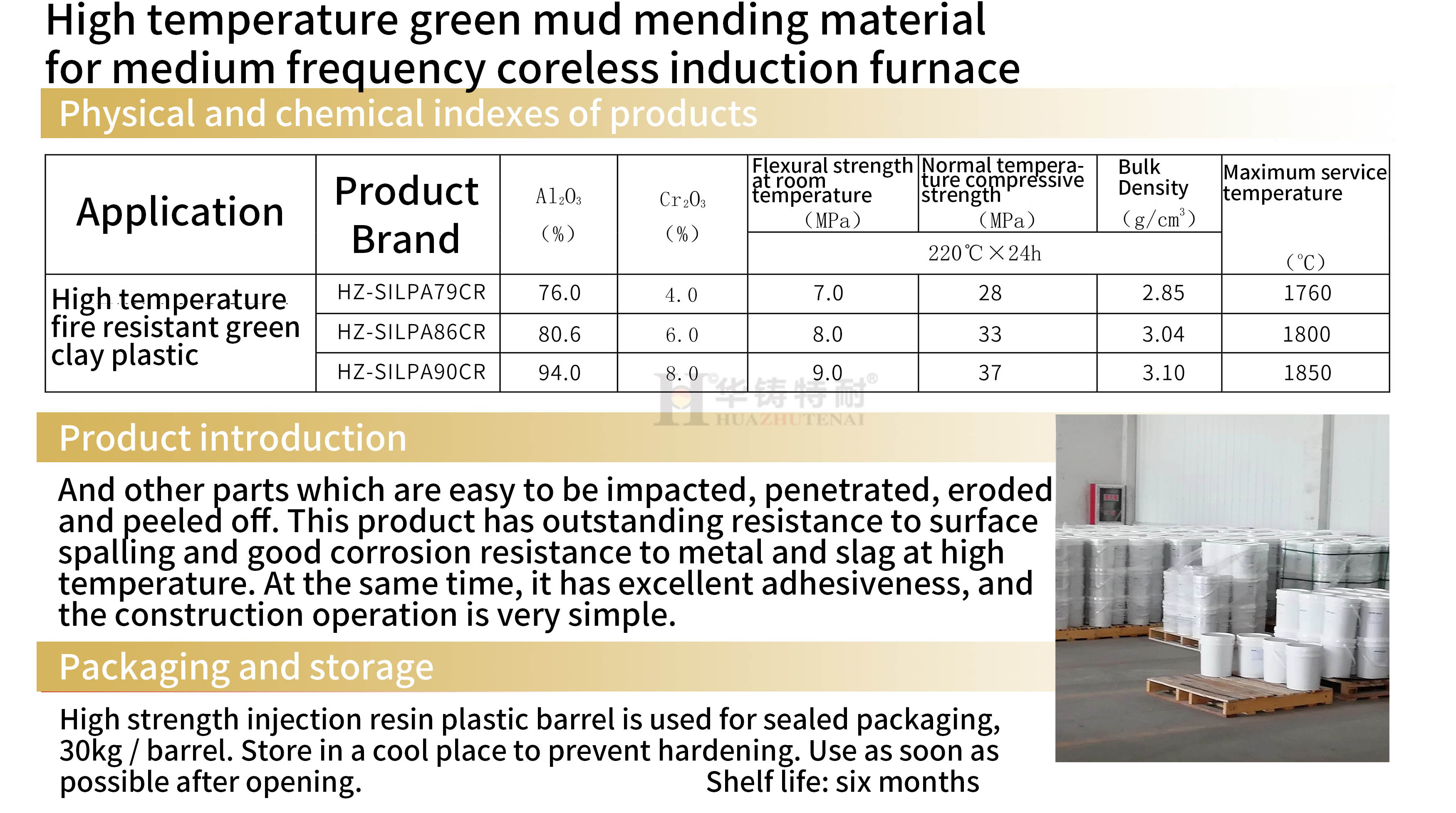 中頻爐高溫綠泥可塑性修補料 【產(chǎn)品介紹】:中頻爐綠泥修補料具有很好的可塑性破損部位修補涂抹或搗打 【生產(chǎn)能力】:年產(chǎn)480噸 【應用范圍】:高溫耐火可塑料也稱高溫綠泥修補料,是選用優(yōu)質(zhì)氧化鋁基為主要原材料,采用特殊的化工原料為結(jié)合劑的可塑性修補料。它使用于中頻感應電爐熔化鋼水及鐵水爐 熔銅爐 熔金爐 熔鋁爐 熔鉛爐 爐口爐嘴用破損部位修補涂抹或搗打 銷售熱線:15252839988 產(chǎn)品介紹 應用范圍 生產(chǎn)流程 技術參數(shù) 在線留言 在線留言 姓名 * 手機號碼 * 留言內(nèi)容 * ←上一篇礦熱爐用高溫耐火綠泥可塑料下一篇:已經(jīng)沒有了