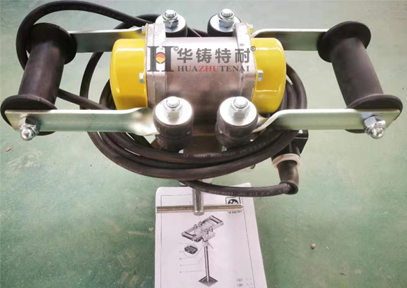 氣動(dòng)振動(dòng)器分為爐底振動(dòng)盤和側(cè)墻內(nèi)模敲擊式振實(shí)工具,該振動(dòng)器用壓縮空氣驅(qū)動(dòng)自動(dòng)進(jìn)行筑爐緊實(shí),能有效地振擊爐襯材料中各點(diǎn),從而使得爐襯上下緊實(shí)度一致。與傳統(tǒng)的電動(dòng)筑爐和手動(dòng)筑爐工具比,氣動(dòng)筑爐機(jī)有如下優(yōu)點(diǎn):